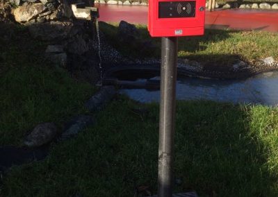 Sono state installate delle colonnine SOS nei punti della struttura dove non è costante la presenza degli operatori, come ad esempio, il giardino sensoriale. In caso di malore, il paziente avvicina il bracciale alla colonnina, che invia un segnale di allarme sul terminale di controllo, posto in portineria.